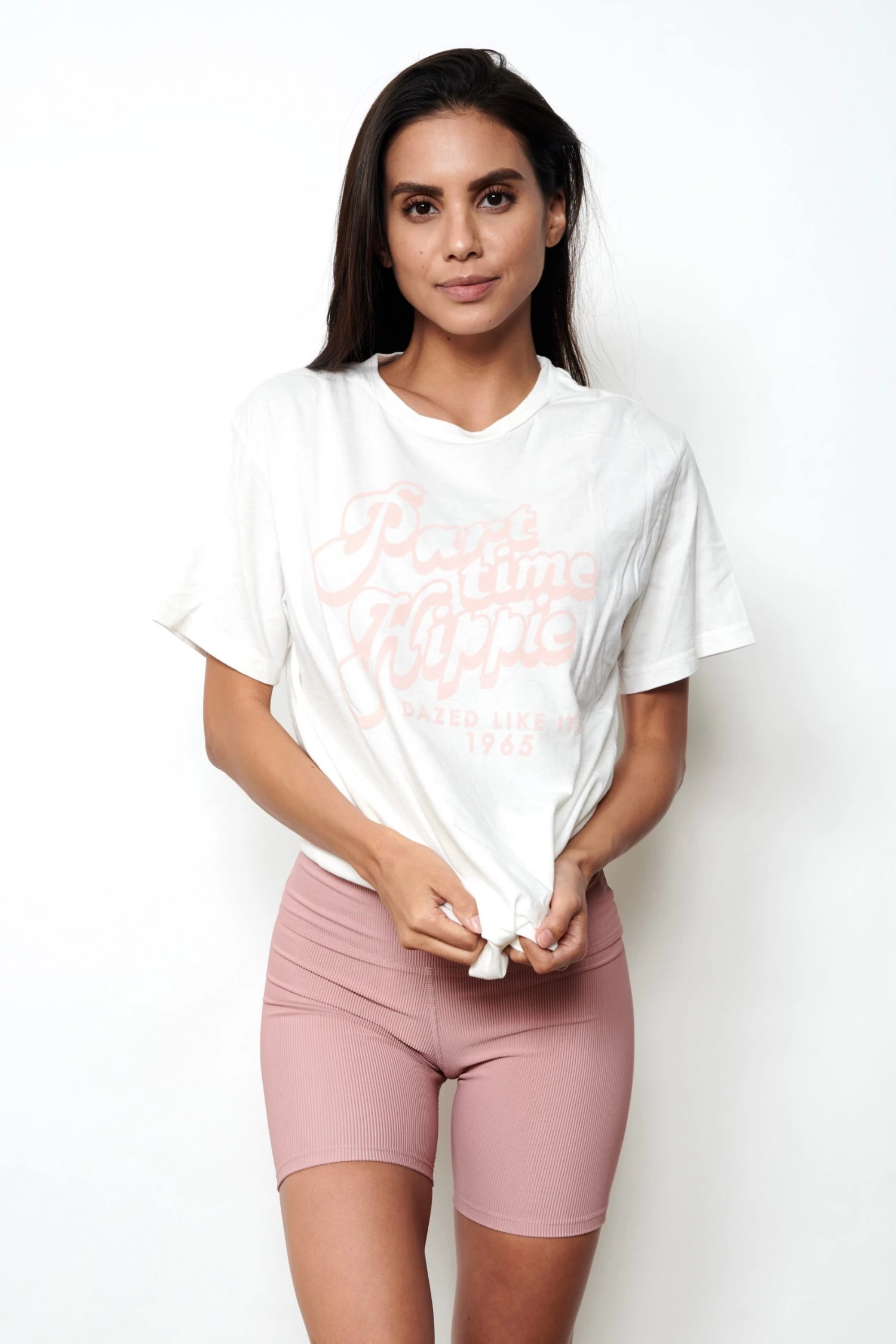 Your favorite lived-in tee is back and better than ever! Featuring BikiniBird Exclusive Part Time Hippie graphic in a gorgeous rose shade makes this a closet staple.Â