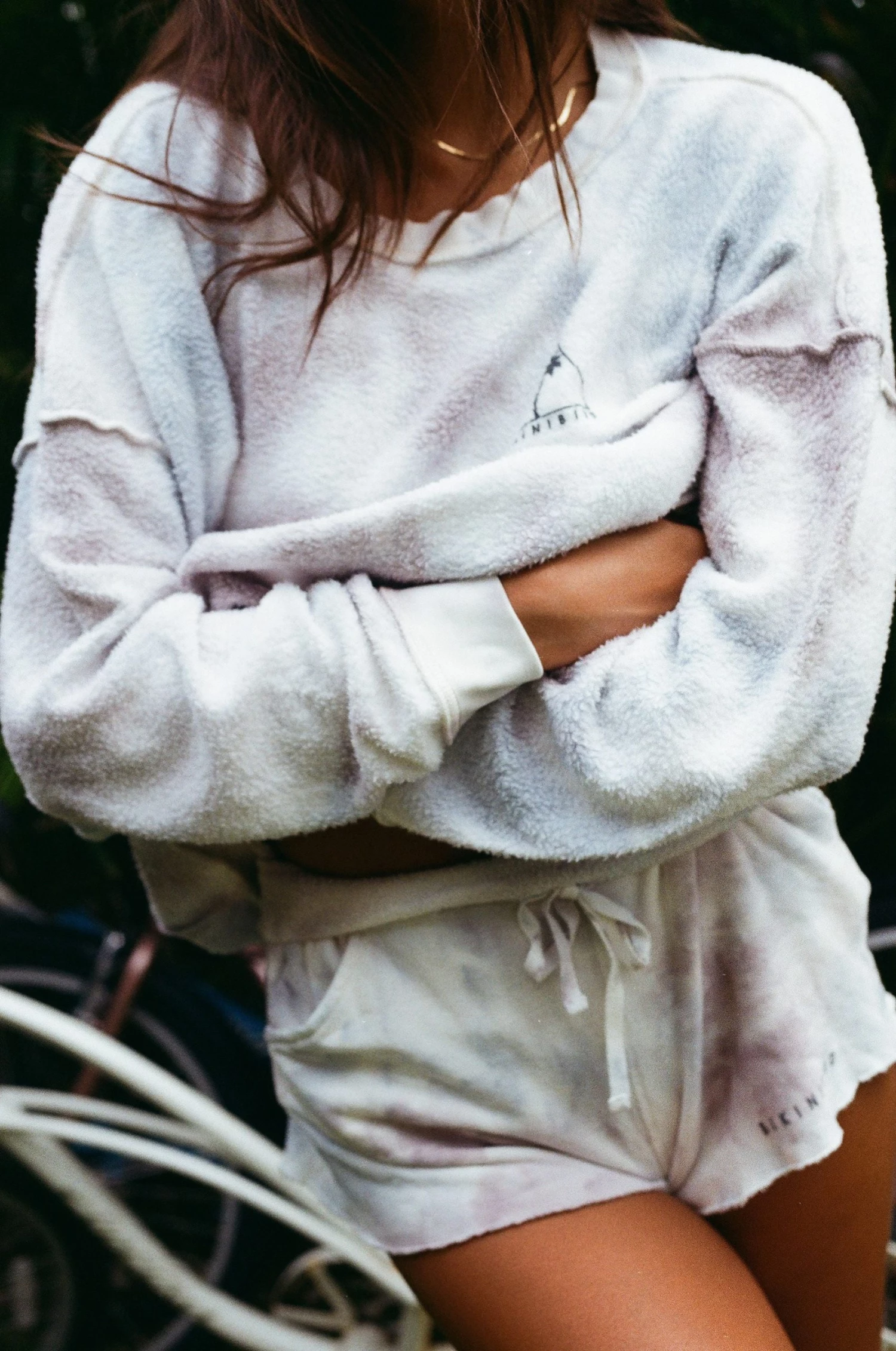 The BikiniBird Tri Palm Short in Tie Dye is an ultra-soft washed fleece exclusive to BikiniBird! These shorts have an adjustable drawstring with pockets!Â