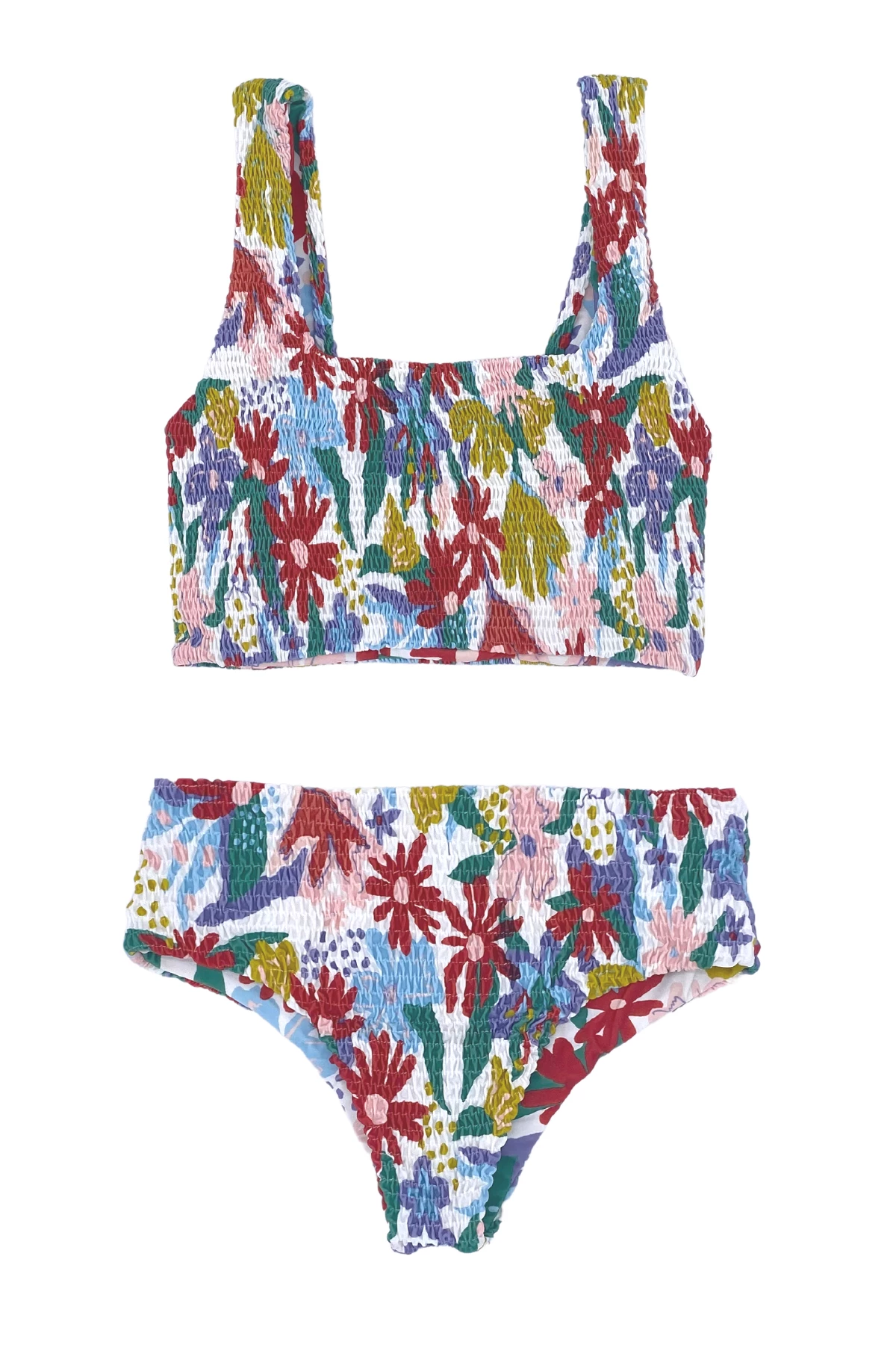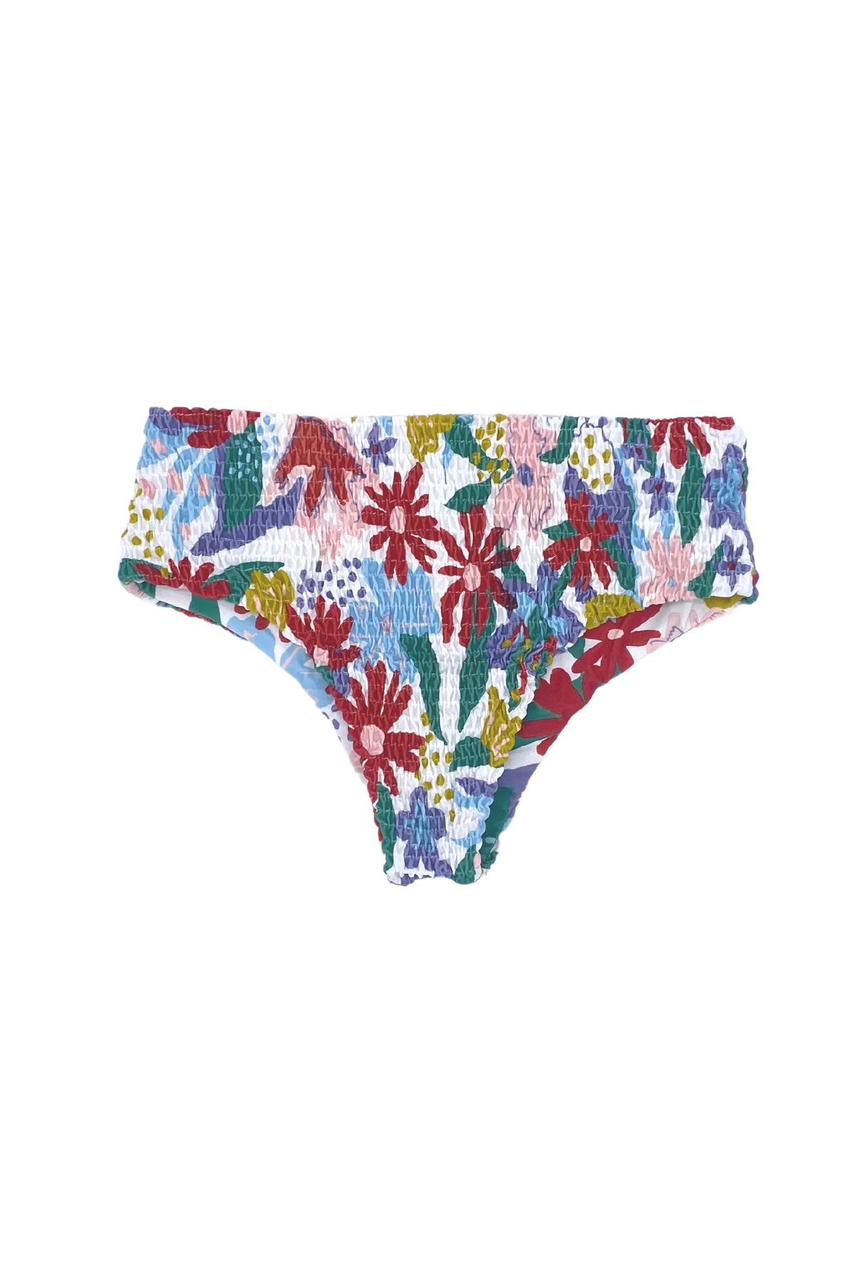 The Aila Blue Bambi Bottom in Hermosa Floral is a is a BikiniBird Exclusive style! We love this midi cheeky smocked bottom in a gorgeous floral print.