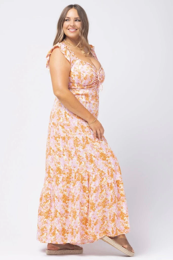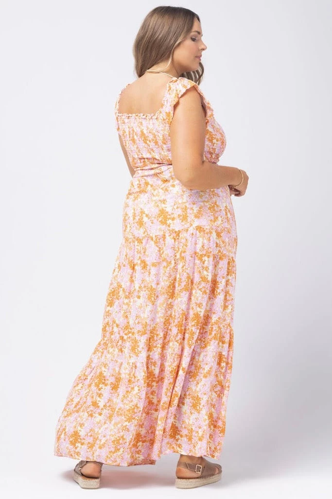 Get swept away in the Lucia Dress. From its off the shoulder ruffled sleeves to its smocked bodice, this maxi length dress with shirred tiers and functional drawstring for cinching will have you dressed for that summer romance.