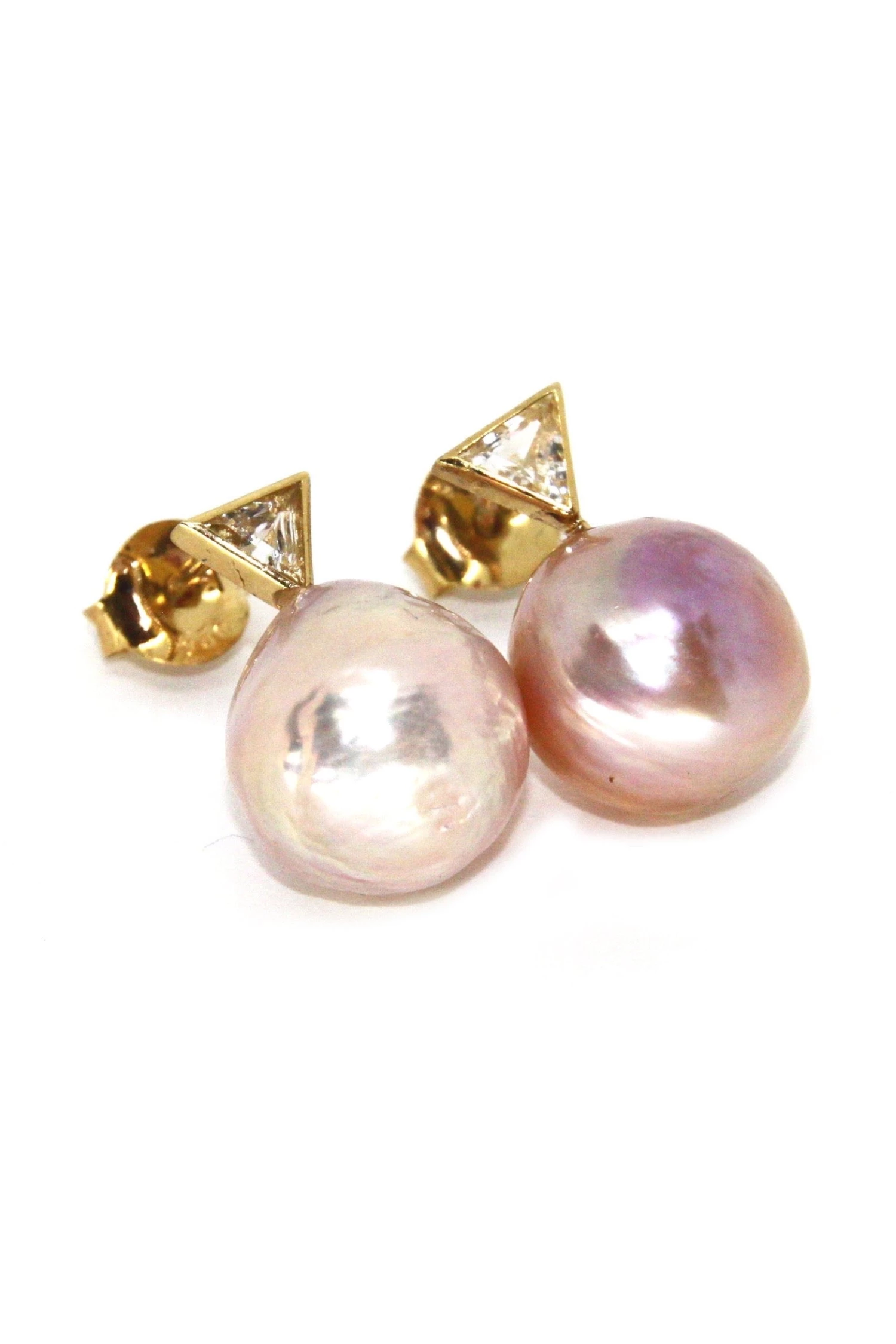 14k gold vermeil bezel set white topaz with baroque freshwater pearls.
