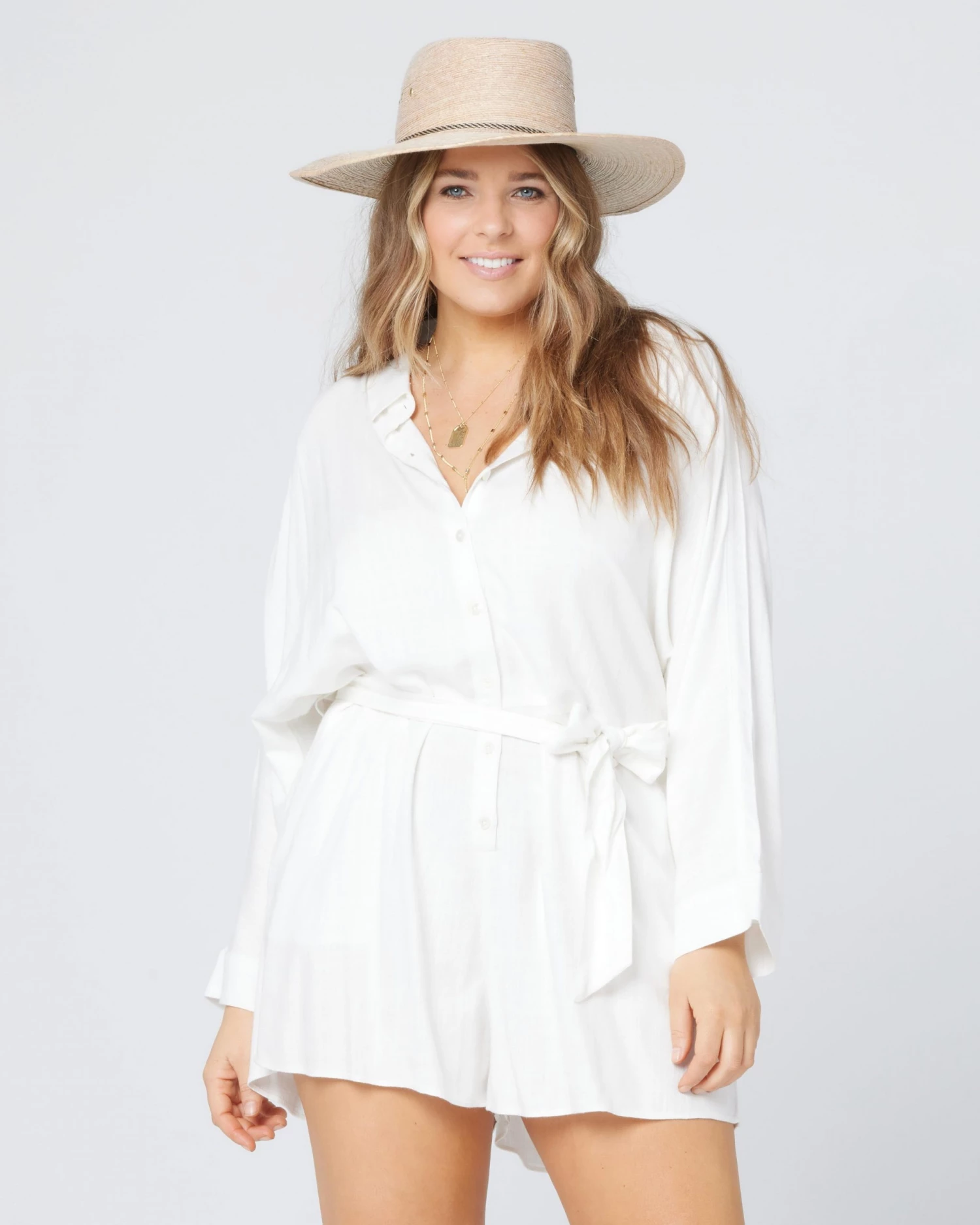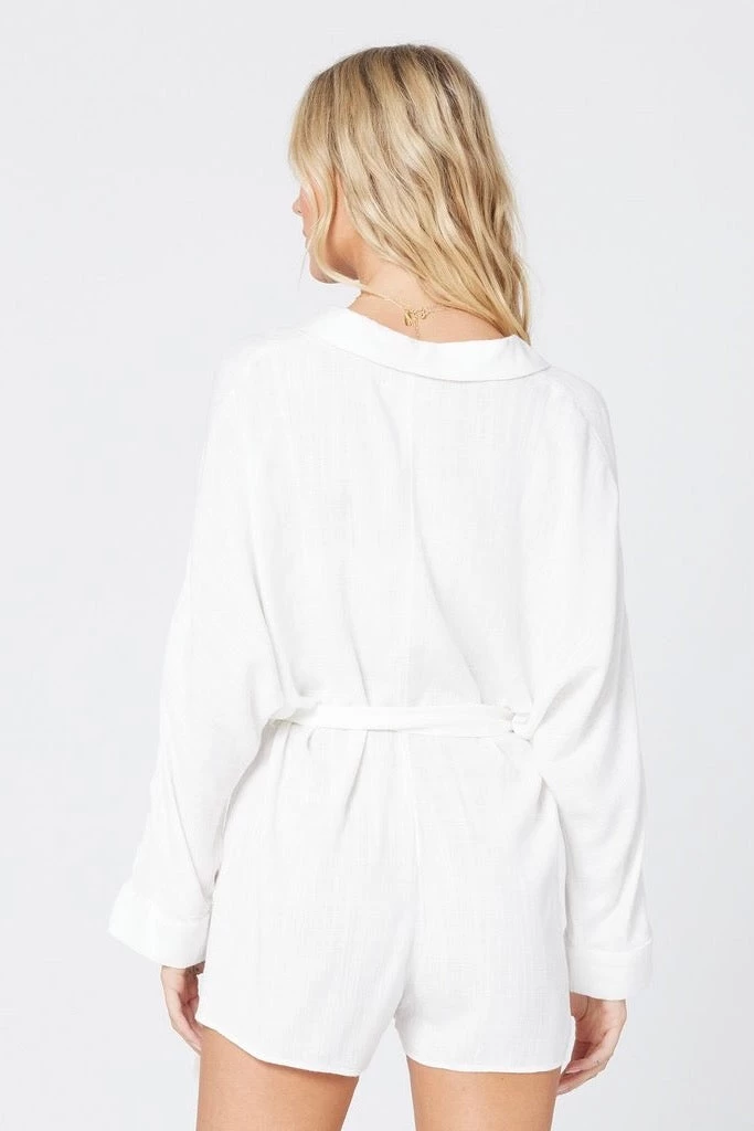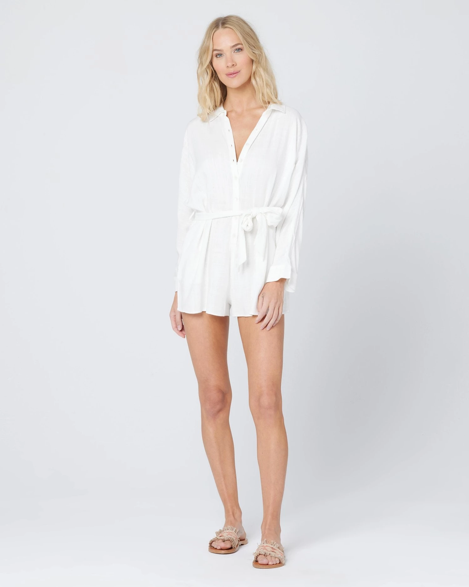 Give your wardrobe a comfy one-and-done update with the Coronado Romper. This warm-weather essential features a relaxed fit with front button closures, a self-tie waist, and 3/4 sleeves.