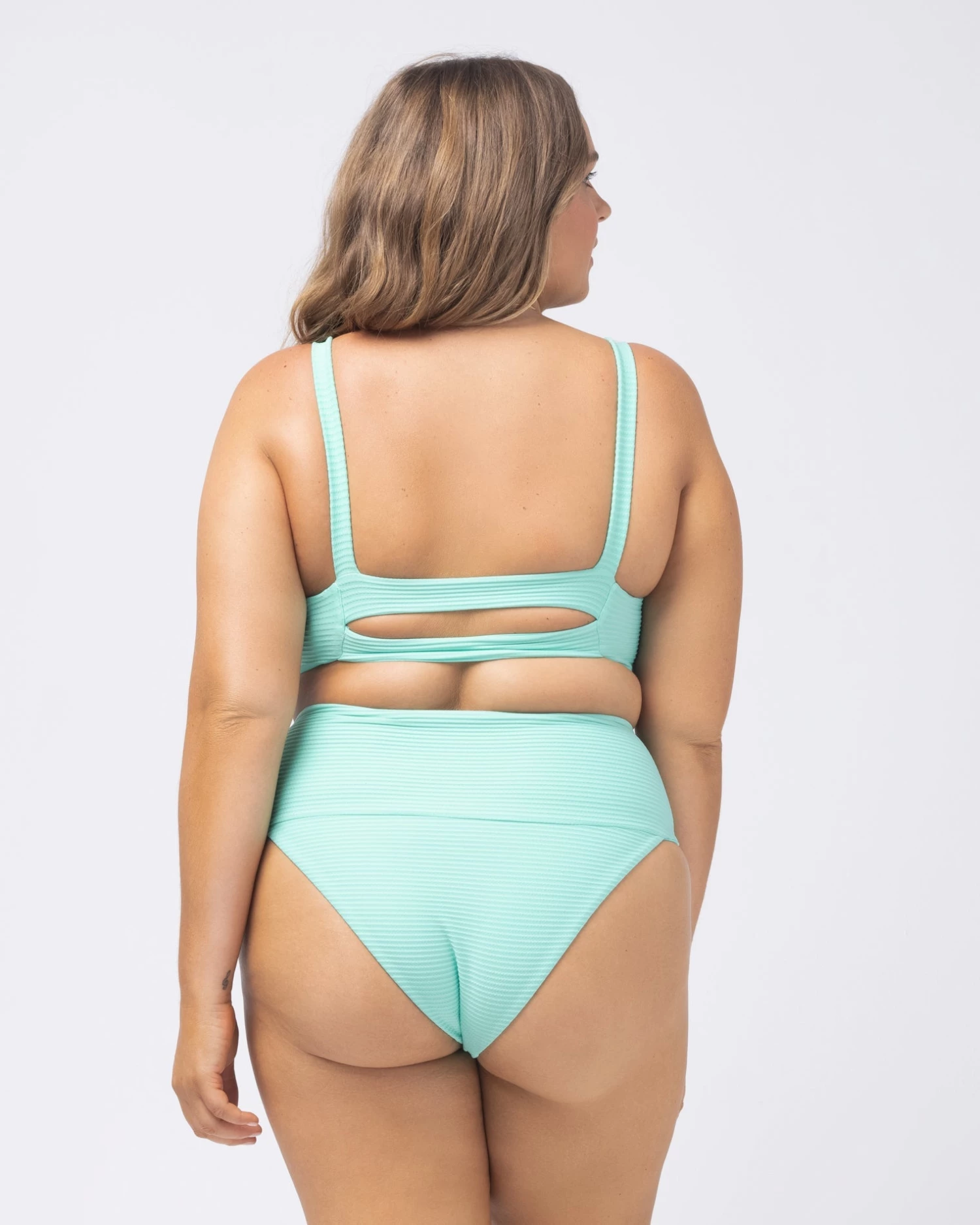 We raised the bar on our best selling high waist bikini bottoms. Part of our “Eco Chic Off the Grid” collection, the fiber in the Desi Bikini Bottom is made from 100% recycled materials. Using REPREVE® – A high quality performance fiber. Featuring an ultra-flattering banded waist and classic coverage.