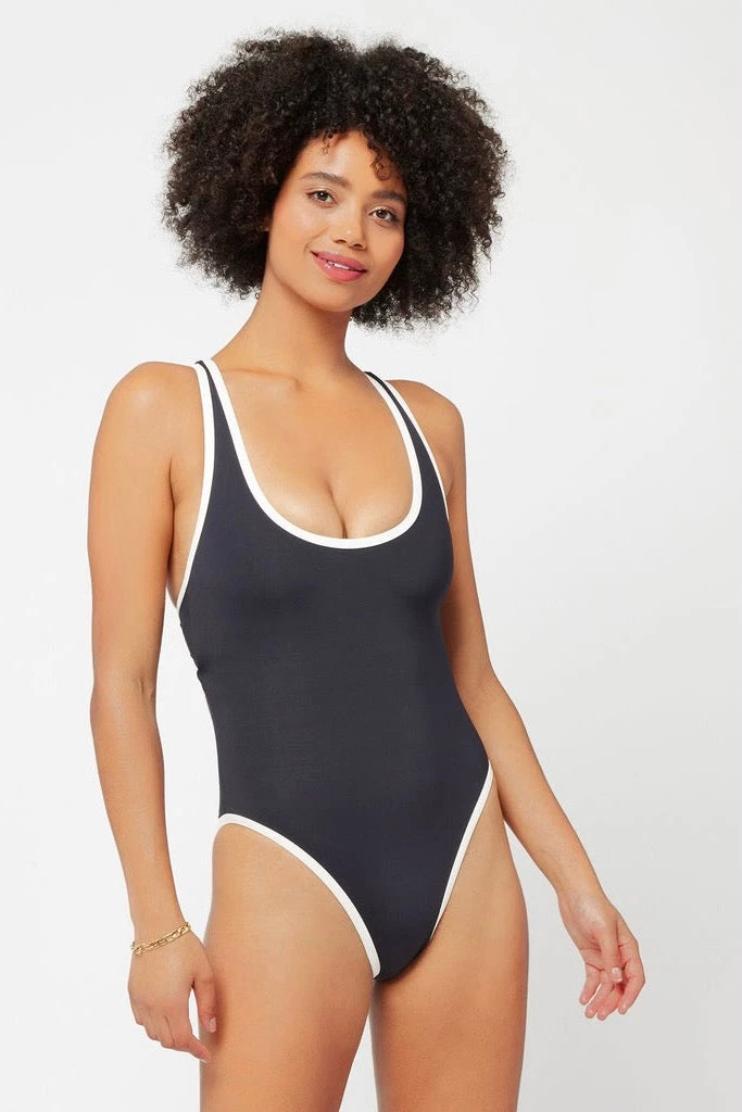 Sizzling sporty, the Ebony One Piece Classic is designed with a low scoop front neckline, shelf bra, and a high leg cut. Featuring a low back with cutouts, this is one bodysuit that’ll never go out of style.