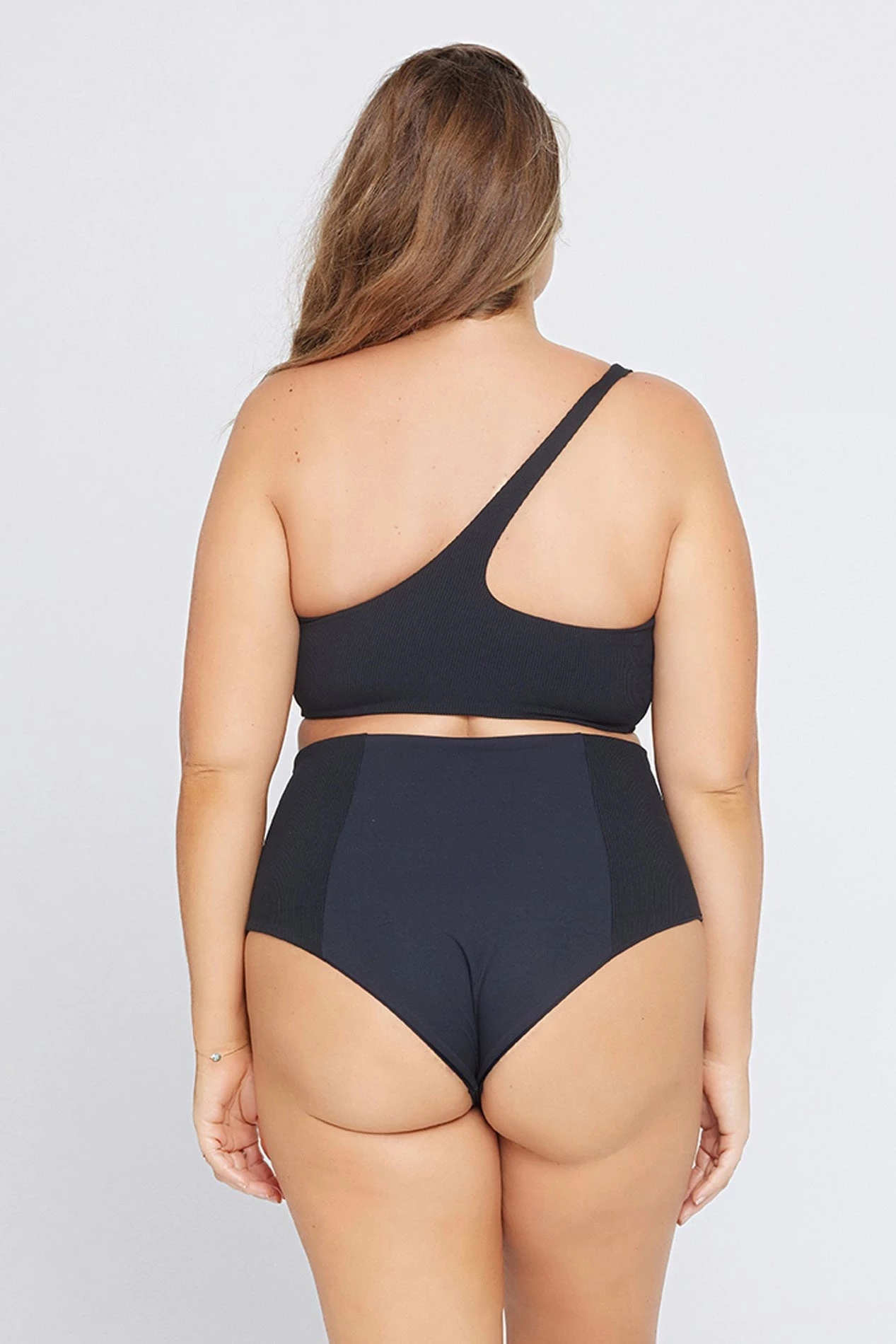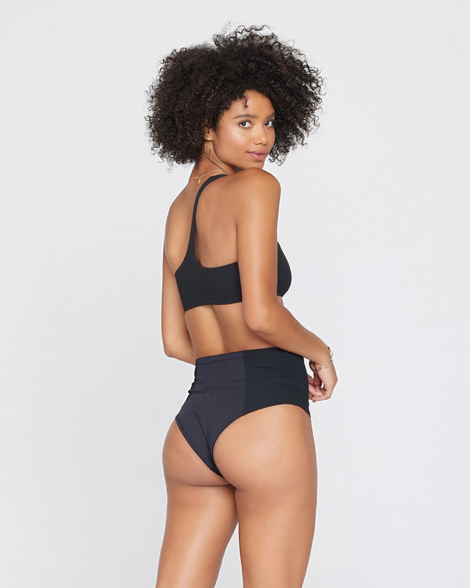 The Jackie Bottom is an updated take on their best selling Portia, but with a flattering side ribbed detail, streamlining the waist. Bitsy coverage adds a dash of spice to this classic look.