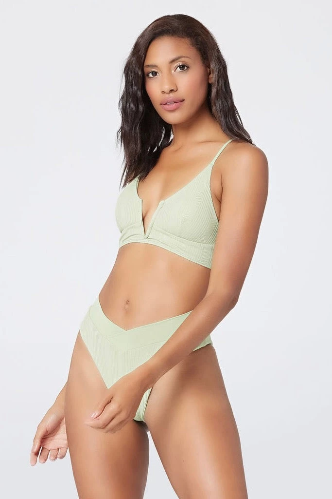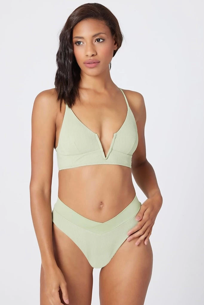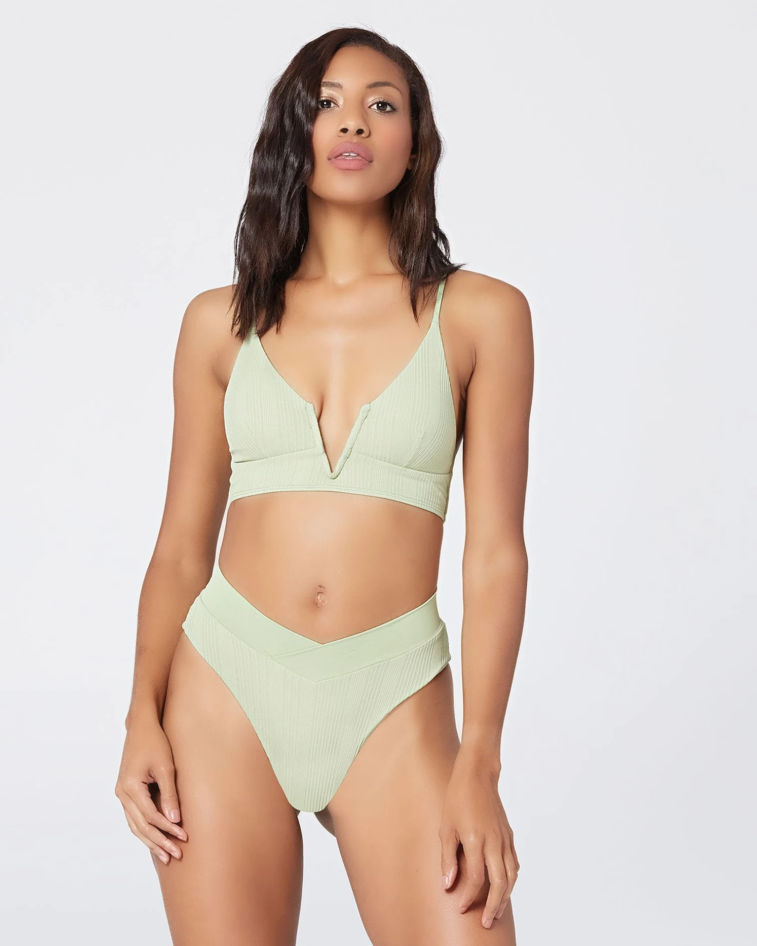 A retro-inspired sculptural silhouette makes the Siren Top a must-have for any beach bombshell. This pullover pointelle ribbed top features a plunging V-wire front and V-detail back. Removable pads and adjustable straps lets you customize your look.