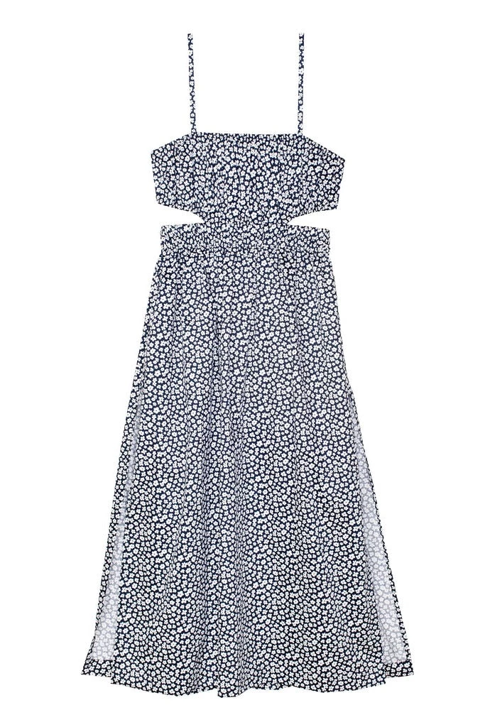 Cue the cut outs, introducing the Tansy dress from Mikoh, a square neck mazi dress with cutout waist detail and the cheeky peek at an open back. This dress also includes a high slit to show off your legs. This dress is ideal for balmy weather or paired with your favorite jacket for the fall.