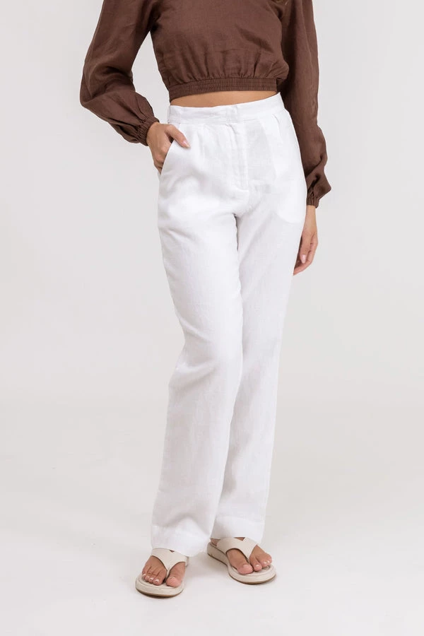 Throw on over you swim by the pool or pair with some sandals to take to the bar, the Retreat Pant in 100% crisp white linen will brighten up your summer wardrobe with a resort style tailored fit in a full length leg.